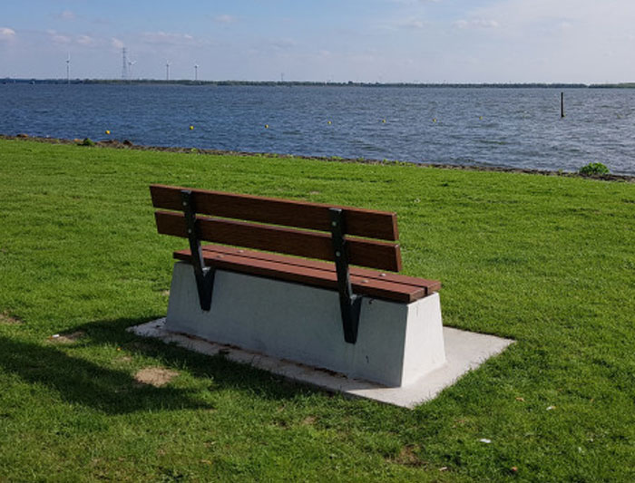 Το παγκάκι είναι κατασκευασμένο από φυσικό σκυρόδεμα, χυτό σε ένα ενιαίο κομμάτι από ιδιαίτερα ανθεκτικό υλικό. Το κάθισμα και η πλάτη είναι σταθερά στερεωμένα στο σκυρόδεμα. Το μπαμπού προσφέρει πιο μαλακή επιφάνεια, προσθέτοντας άνεση στον χρήστη.